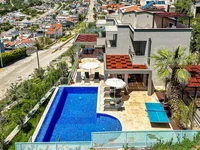 Położona na działce o powierzchni 600 m² z możliwością połączenia dwóch parceli, ta luksusowa willa oferuje niezakłócone widoki na zatokę Kalkan, morze i wyspy. W części zewnętrznej znajduje się podgrzewany basen typu infinity z wydzieloną strefą dla dzieci, wbudowane miejsce do grillowania, bar na świeżym powietrzu oraz strefa do gry w tenisa stołowego. Prywatny parking z kutymi bramami i oświetleniem krajobrazowym zapewnia komfort życia oraz wysokie możliwości wynajmu.