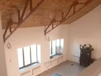 Dom ma ogrzewanie gazowe i elektryczne, drewniane ramy, panele słoneczne, niestandardowy design.