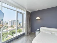 22636 Sprzedam luksusowe 2-pokojowe mieszkanie przy Bulwarze Francuskim w nowym budynku. Znajduje się na środkowym piętrze z przepięknym panoramicznym widokiem na miasto. Powierzchnia całkowita 104 mkw. Oddzielne pokoje. Przestronna pracownia kuchenna. Stylowy remont przeprowadzono według projektu autorskiego przy użyciu drogich materiałów. Wyposażone we wszystkie niezbędne meble i sprzęt AGD światowych marek.