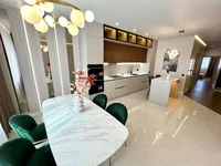 19551 Trzypokojowe mieszkanie jest na sprzedaż w kompleksie mieszkalnym 26 Zhemchuzhina. Dom został oddany do użytku i jest zamieszkały. Powierzchnia całkowita 110 mkw. Został zakończony designerski remont, wyposażony we wszystkie meble i sprzęty. Oddzielny układ: przestronna kuchnia-studio i trzy osobne sypialnie, dwie łazienki. Okna na dwie strony: na Gezuezskaya i morze.