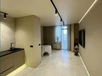 Znajduje się na środkowym piętrze. Powierzchnia całkowita 66 m2. Dwie pełne sypialnie i kuchnia typu studio, przestronna łazienka, garderoba, loggia. Indywidualny projekt projektowy. W pełni wyposażone we wszystkie niezbędne sprzęty i meble do życia. Loggia z panoramicznym przeszkleniem. Możliwa sprzedaż razem z podwójnym miejscem parkingowym.