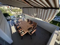 Trzy systemy klimatyzacji. Przestronny taras z elektryczną markizą i częścią wypoczynkową.