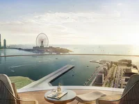 The residence with a direct access to the promenade features a private beach, a landscaped roof-top garden, an in finity pool, a kids' pool and a playground, a barbecue area, cafes and boutiques, around-the-clock security.