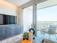The apartment itself is beautifully presented, with an interior design that combines modern style with classic elegance. The open-plan kitchen and reception room is a bright and spacious area that is perfect for entertaining guests. The room is filled with natural light, thanks to the large windows and glass doors that lead to a private balcony with stunning views of the city.
