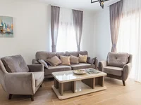 Apartament rozciąga się na 87 metrów kwadratowych i znajduje się na parterze. Ma częściowy widok na morze z tarasu.