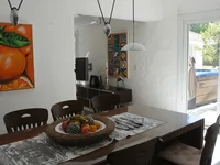 House for sale by the Cantegril Golf course on a large lot of 2,000 m2 and with 453 m2 constructed. Built for comfort with double-pane windows with PVC frame and gas powered hydronic radiant floor heating, air conditioning, motorized curtains and all, including lighting, can be controlled remotely through internet. Plus there are 3 high-efficiency wood stoves. Large bedrooms, fully equipped kitchen open to dining and living. Outside is a covered patio with barbecue and outdoor dining area, heated pool and jacuzzi for 6. Large garage for 2 cars. Totally fenced yard. Ref: 1600