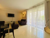 Przestronny, w pełni wyposażony salon z aneksem kuchennym i balkonem