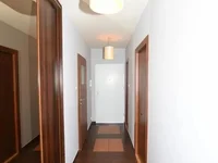 The apartment features laminate flooring and tiles throughout, adding a touch of elegance. The wooden windows are equipped with sun blinds, allowing you to control the amount of natural light entering the rooms.