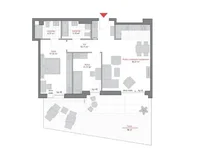Apartment with an area of ​​80.19 m2, south exposure, located on the ground floor. The living room with kitchenette (30.21 m2) has an exit through sliding balcony doors to a terrace with a garden of 46 m2, from which there is a view of the heart of the estate – a green patio. The apartment has two bedrooms (11.77 m2 and 17.55 m2) and two bathrooms (4.77 m2 and 5.18 m2) with the possibility of adding a bathtub and a shower cabin.