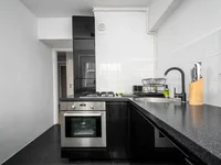 The apartment is very well lit thanks to the large windows and southwest orientation.