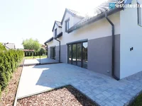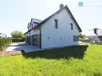 A well-arranged, rectangular plot planted with shrubs. Utilities: municipal water and sewage, gas and electricity. PVC windows - 3-pane, ceramic roof tiles, Suporex cellular concrete 24 cm, Styrofoam 20 cm, cubes and external lighting, panel fence with automated gate, terraces on the eastern side, 2-function gas furnace with a 150l tank, air conditioning, heated floors, installation for the heat pump. The interior of the house is spacious, functional and open to your own modifications. From the bright living room there is access to a 10-meter terrace, on the first floor there are 4 spacious rooms, including one with a dressing room and access to the balcony. Large bathrooms, unused attic, garage with an area of 19 m2. House in developers standard - based on the Murator project: house in BCO2 symbiosis (semi-detached house).