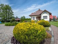 An attractive house in Bialolenka on a large plot surrounded by greenery.