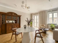 The house has a restored facade, is in very good condition, clean and well-maintained staircases.