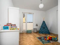 The apartment has high ceilings of 2.75 m and oak parquet from Jawor (laid in 2021).