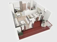 The apartment complex with the bright name "Apartments at the Cherry Blossoms" impresses with its non-standard style. The burgundy-colored building will offer housing of a higher level of comfort. There will be both cozy studios and spacious five-room apartments with an area of ​​up to 142 m². Owners of four available penthouses will have access to private roof terraces. Other apartments will be equipped with spacious loggias, terraces and balconies, which will significantly expand the daytime area.
