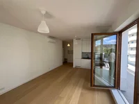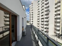 Spacious living room with kitchen, 2 bedrooms, 2 bathrooms, hallway and a huge terrace along the entire apartment.