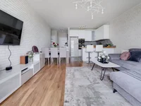 On the territory of the complex there is a playground and well-kept greenery, in the building there is a reception with 24-hour security. The apartment is ideal for both a couple and a family with a child. The price of the apartment is 1,590,000 PLN, additionally paid for two parking spaces on the platform for 60,000 PLN and a storage room for 20,000 PLN.