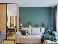 For sale is a two-room, two-sided apartment of 39.9 m² on the ground floor of a four-story house at Puszczyka 20 in Ursynów. The central part of the apartment is a living room of 19.8 m² with western exposure, next to it is a bedroom of 6.09 m² on the eastern side, as well as a kitchen and a bathroom with a shower. The apartment was renovated a few years ago, last year it was updated and furnished with custom-made furniture. The apartment is ready for occupancy, does not require additional investments, and it is possible to buy it furnished. The house, built in 1977, is in good condition. On the ground floor of the building there is a beauty salon and a school of foreign languages for children. The apartment is located in a green and cozy area of Warsaw, close to many shops, restaurants, cafes and other services. The Ursynów metro station is 600 meters away, providing convenient access to the rest of the city, and the nearest bus stop, Koński Jar, is located right under the house. There are many schools and kindergartens in the area, which makes the area attractive for families with children. There are parks nearby, including Kozłowski Park and Kabacki Forest, as well as shopping centers and supermarkets. The apartment is sold with cooperative rights and KW, it is possible to buy on credit. The apartment comes with a storage room of 1.85 m², the housing estate has many public parking spaces.