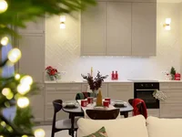 The apartment has a spacious living room with a kitchenette, ideal for family gatherings, a master bedroom with a dressing room and a separate bathroom, two additional bedrooms that can be used as an office, a children's room or a guest room, a second bathroom and a comfortable hall with built-in wardrobes.