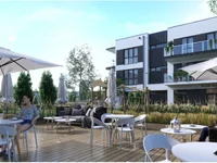 The residential area will be fully landscaped, there will be service points, a bakery, a coffee shop, shops, a kindergarten. There will be a bus stop nearby. The school is about 1 km away.