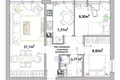 The apartment has an area of 57.51 m² and requires renovation. The attached photos show proposed layout options from the architect. The apartment has great potential for creating an ideal living space.