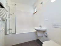 The apartment is located on the first floor without an elevator and has a 100 m² share in the garden by verbal agreement.
