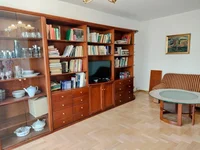 There is a balcony and a basement. The apartment is finished and partially furnished: a wardrobe, a sofa, a chest of drawers, a TV, a table, a bed, a spacious wardrobe in the bedroom, a refrigerator with a freezer, a gas stove with an oven. The floor is parquet, tiles, and ceramic tiles.