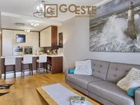 comfortably furnished, ready to move in. It has a living room with an open kitchen and a large loggia, two bedrooms, a hall, a bathroom with shower, a bathroom with bathtub and a laundry room. It doesn't require financial expenditure. Completed in 2017 with materials of the highest quality. Wooden windows, oak floor. It is completely furnished - offered with all equipment.