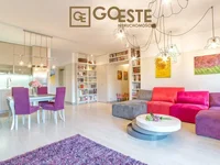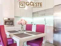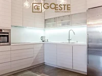 The interior of the apartment was designed in an elegant style, combining different textures and colors. The living room and kitchen are dominated by a neutral colour palette, which creates a friendly atmosphere conducive to relaxation. The kitchen is equipped with high-end furniture and household appliances, including a refrigerator, dishwasher, oven with Bosch microwave function, Mastercook induction board, and durable countertops from the conglomerate. From the living room leads you to the covered terrace and the larger of the two gardens, which have been carefully cultivated with greenery, creating a perfect place to relax in the open air.