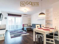 The apartment is fully furnished and ready to live. The living room, thanks to windows from the south-western side, is perfectly illuminated and cozy. Combined with the kitchenette, it creates an open daily space, ideal for both rest and reception of guests. The kitchen furniture and high quality appliances provide comfort and functionality. Additionally, the living room has air conditioning, which on hot days will provide relief and pleasant chill.