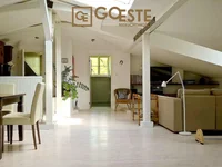 Carefully finished apartment in the attic (useable area 89.45 m2), tripartitely arranged, spacious and visible, 7 windows in glazed, besides a roof window, lighting the living room.