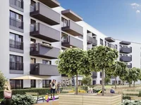 Building with modern, minimalist and functional architecture surrounded by vast green areas. Near Lake Czerniakowska, numerous educational and service-trade facilities.