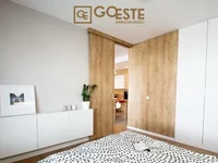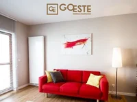 Apartment fully equipped and furnished, finished in a high standard. In the living room sofa and TV, in the kitchen appliances (fridge, dishwasher, oven, stove, microwave), in the bedroom bed and wardrobe in the building, in the bathroom shower and washing machine. Floor heating in the bathroom. Possibility of retrofitting the apartment according to the tenant's needs. Windows from the inner, quiet side of the estate.