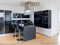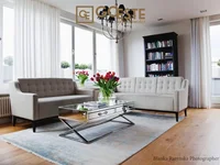 Luxury stylish accommodation with spacious living room and a huge terrace with air heater and a beautiful view of the area. The terrace additionally has a shrub over its entire length, which ensures the intimacy of people on it. The kitchen is equipped with a beautiful Italian building and high-class household appliances. The windows from the apartment go to three sides of the world.