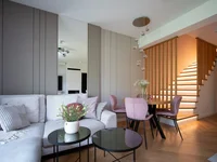 On the second floor there is a bedroom with a dressing room, an office with an exit to the balcony, a fitness room and a large bathroom with a bath and shower, a laundry room.