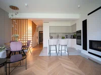 The house has oak parquet and stairs, heated floors on the ground floor and in the bathroom, air conditioning on all floors, a security system and fast Internet. In the yard there is a private fenced garden, a terrace and a lawn, a garage and an additional parking space. Access by a private road.