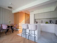On the third floor there is a dressing room, a room with a bathroom and an open area for relaxation or work.