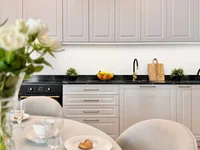 Custom-made furniture, marble kitchen and bathroom countertops, high-quality Italian tiles and premium sanitary ware have been installed. Lighting with motion sensors has been built in.
