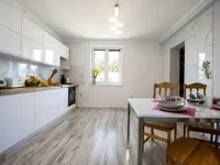 The two-story apartment with its own entrance, entrance and garden, located at Starzyńska Street in Kiekrz. located on a plot of 826m2 with 46m2 two-station free standing garage and 20m2 gazebo.