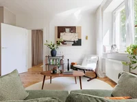 – in short – Old Mokotów – who knows, knows that it is one of the better places to live in Warsaw. Racławicka Metro is within a 7-minute walk from here. Sinked in green building and in it neat two rooms with separate kitchen overlooking the green. In a word truly Warsaw property in the top and desired location.