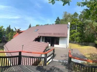 A unique 1975 villa is located on a picturesque cliff, overlooking a peaceful floodplain, which harmoniously fits into the surrounding nature. Located on a land bordering a dense, pine-smelling forest, the property offers a unique view of a lazy river, whose waters flicker in the rays of the sun, creating an almost picturesque landscape.