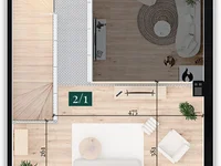For sale with a balcony, a sunny one-room apartment with an area of 47.61 sq.m in Warsaw, Pr…