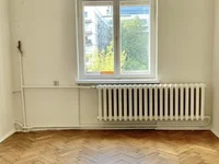 This charming apartment spans 57.5 m² and is located on the 4th floor of a historic tenement building from 1928, presented in developer condition. Original features add character, while high ceilings (over 3 m) create a spacious atmosphere. The windows overlook a quiet street, providing a pleasant view of modern skyscrapers. Room layout includes:
