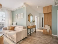 We present a comfortable, quiet apartment on the 1st floor of a modern building from 2017. The interior is fully finished and ready to move in, with an exposure overlooking a green patio. The apartment features a spacious living room of approximately 18.5 m², a fully equipped kitchen connected to the living room of about 10 m² with custom furniture and appliances, two bedrooms measuring approximately 11.15 m² and 11.57 m², a bathroom of about 4.59 m² with custom furniture, a new washing machine, and dryer, and a hallway of approximately 8.08 m² with a roomy custom wardrobe. Enjoy the lovely loggia of 13.77 m² with a view of the green area of the estate.