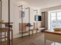 T1(T0 +T0) bedroom apartment with 83 sqm, brand new, with terrace, located on the banks of the River Douro, in Gaia, at the Fervença Palace. Close to the Port wine cellars, the D. Luís Bridge, the Cathedral and a few minutes from the city centre, this exclusive condo is a carefully thought-out rehabilitation project of a 17th century palace, which has kept the identity and architectural characteristics of the period. Facing south, great sun exposure and a magnificent view of the river and the city, the Fervença Palace also offers you the possibility of obtaining a fixed return associated and being able to buy your apartment fully decorated and furnished