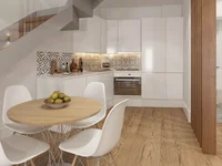 The kitchen will be equipped with Bosch appliances and will have fitted wardrobes, and in the bedroom area there is built-in furniture.