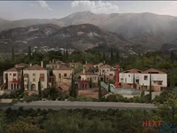 Located on the stunning hills of Dhërmi, with mesmerizing views over the Ionian Sea, this exclusive residential resort perfectly blends traditional Albanian architecture with modern efficiency. Designed to create a harmonious balance between nature and luxury, the resort consists of stone villas and contemporary residences surrounded by lush greenery. Hidden under the roofs of Dhërmi, it reveals how a century of turmoil and dreams has shaped the way this village lives and builds, intertwining tradition with modern vision, memory with possibility.