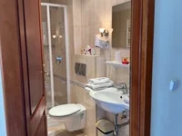 Гостевой туалет и роскошная ванная комната с душем и массажной ванной.