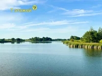 Участок расположен на берегу живописного озера, в окружении леса — идеально для отдыха и жизни на природе.