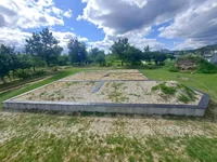 На участке фундамент современного дома - бунгало, построенный в полном соответствии строительным нормам и с большим запасом прочности: 0.9м глубиной и 0.6 м над уровнем нулевой отметки, капитально армирован, гидроизолирован.